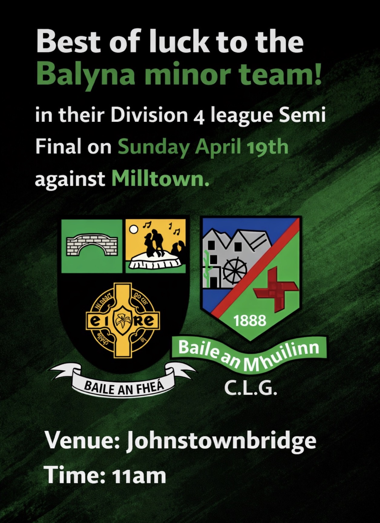 April 19 @ 11:00 am - 12:30 pm Johnstownbridge GAA
